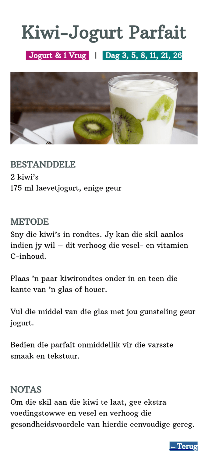 "Help baie dat eetplan nie vervelig raak nie! sal dus langer kan volhou met dieet dankie"